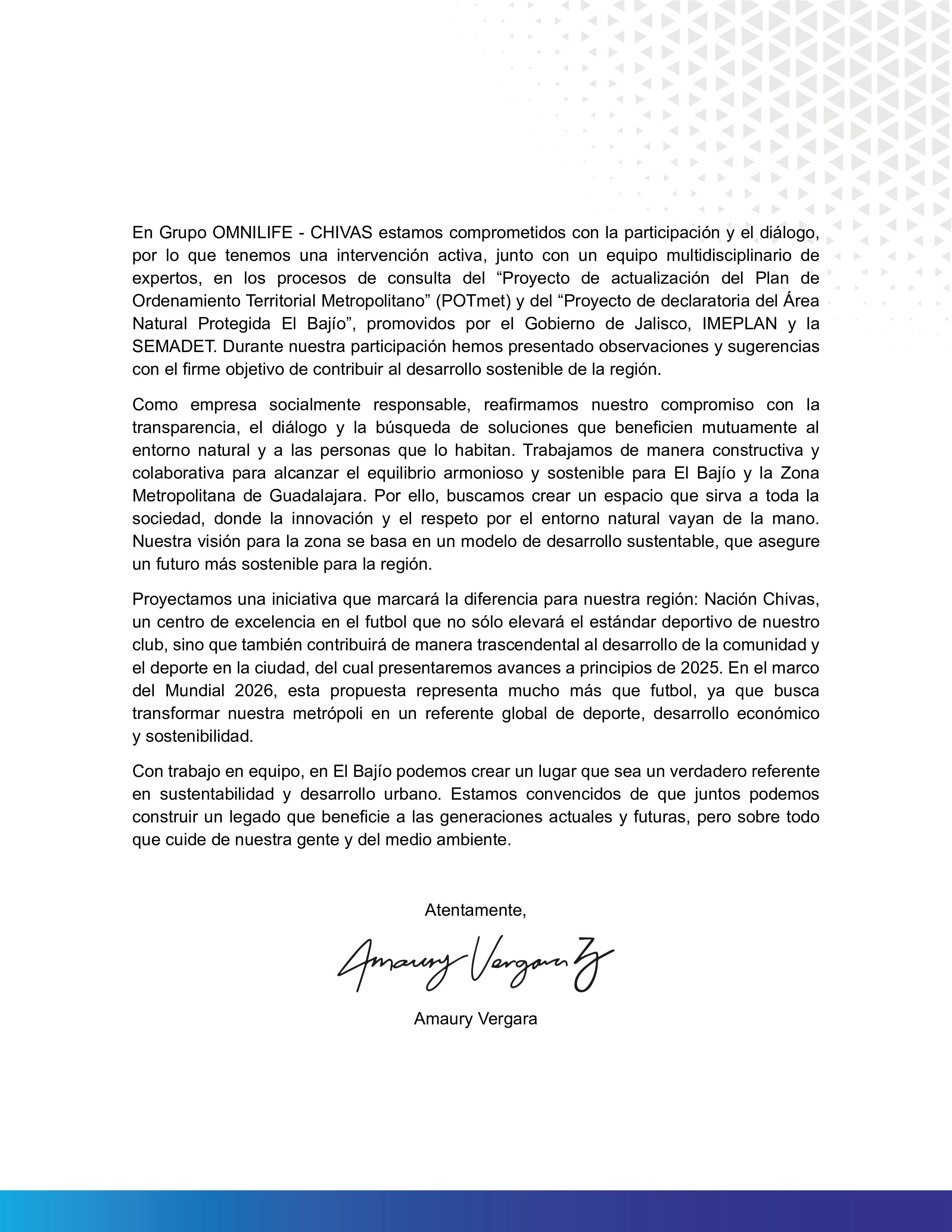 Amaury Vergara lanzó un importante comunicado que tiene que ver con el futuro de Chivas a mediano plazo, pues se construirá un nuevo complejo deportivo del Rebaño Sagrado.