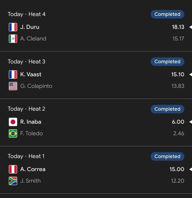 Después de que terminaran todos los heats eliminatorios de la justa olímpica, se dieron a conocer los resultados de los 16 atletas que estuvieron participando en esta ronda, donde nos llevamos una gran sorpresa.
