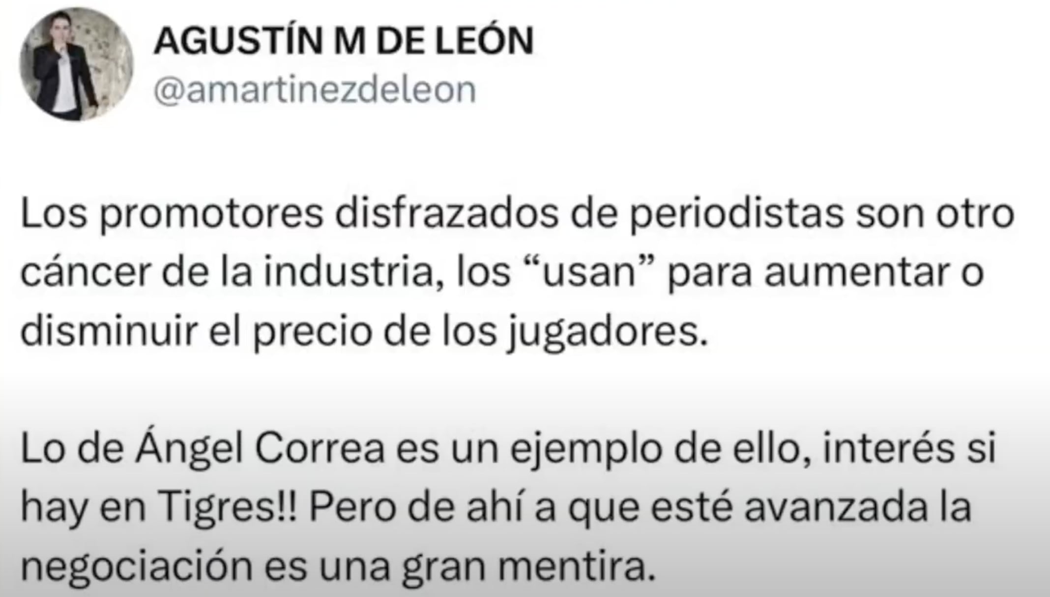 Lo de Ángel Correa es un ejemplo de ello, interés si hay en Tigres!! Pero de ahí a que esté avanzada la negociación es una gran mentira”, se lee en su cuenta de X.