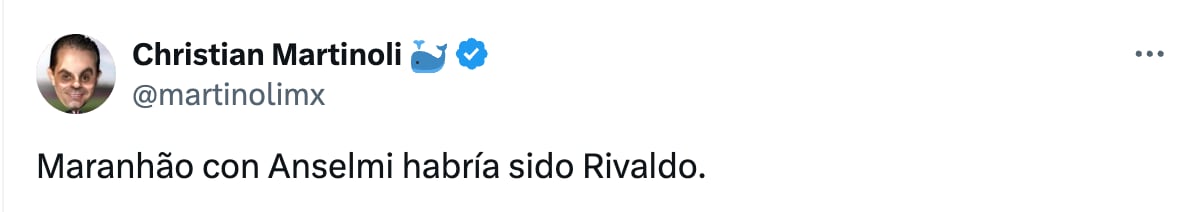 En uno de sus tuits, el periodista de TV Azteca mencionó que si Maranhao, ex jugador de La Máquina, hubiera jugado en este plantel, sus capacidades serían similares a las del histórico futbolista brasileño Rivaldo.